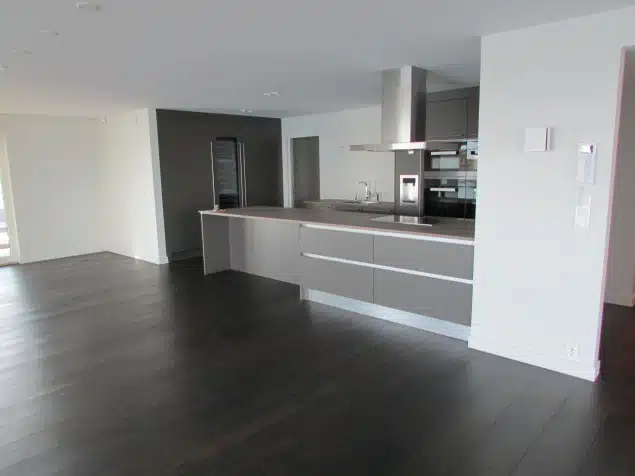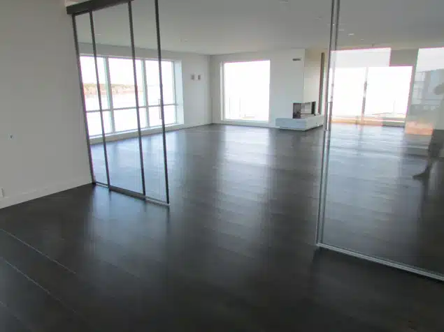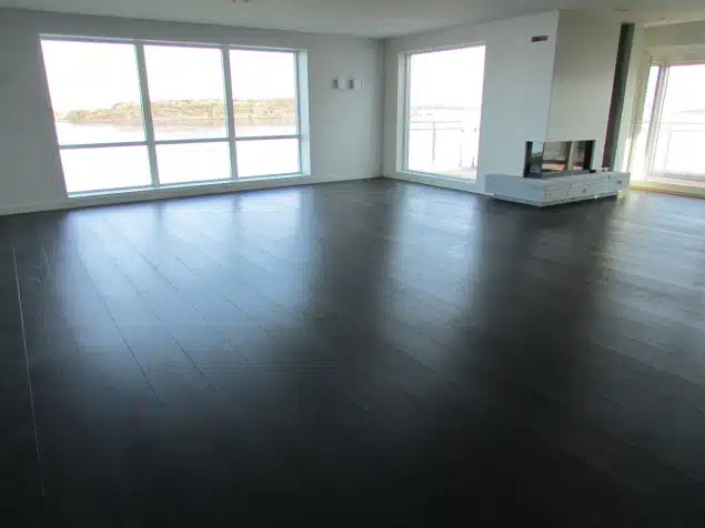 KB Gulvsliping utførte farging av eikegulv i denne leiligheten på 160m2. Monocoat Charcoal Olje ble brukt for en bedre finnish – Resultatet ble veldig bra og kunden ble svært fornøyd.